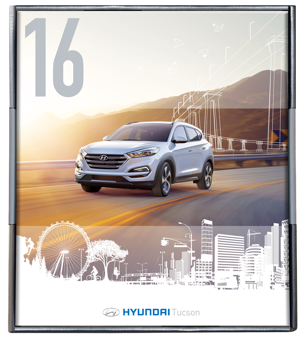 Work includes: Hyundai Tucson - National Vehicle Re-Launch and Dealership Sales Program to include global design direction, dealership sell-in kit, sales collateral, brochure, interactive presentation, illustration, photography composites and video.